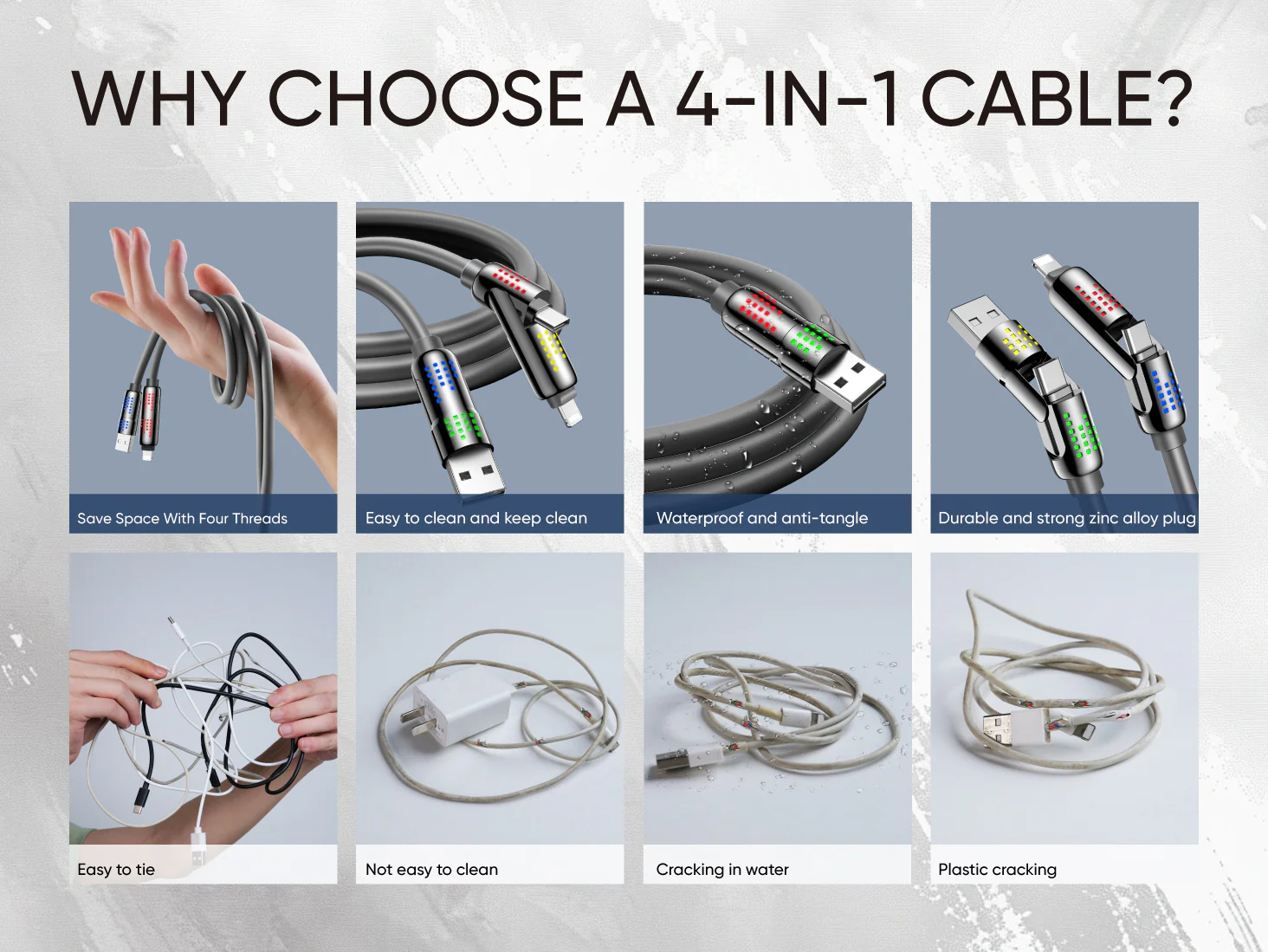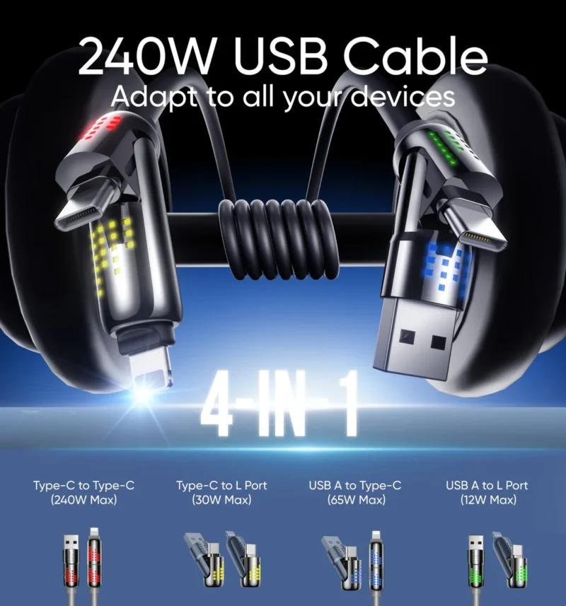 Charge your devices faster than ever with the MFish 4in-1 USB C Cable 240W.