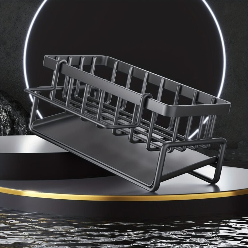 1pc Sink Caddy. Sponge Drain Rack With Dishcloth Holder. Stainless Steel Sink Storage Rack For Sponge Dish Soap Dishcloth Brushes Rags. Kitchen Countertop Organizer. Kitchen Accessories