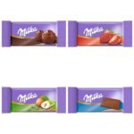 Milka Naps Mix. 1 x 1 kg Tin. Melt-in-the-Mouth Mini Chocolate Bars Made from Alpine Milk. Strawberry. Hazelnut and Crème au Cacao