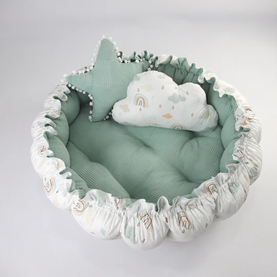 The nest is made of breathable and soft cotton and piqué fabric and provides a protected environment for the baby. It is easy to carry and can be used both in bed and when traveling .