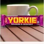YORKIE Raisin & Biscuit, five solid chunks of smooth, milk chocolate with delicious raisins and crunchy biscuit pieces.