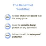 Rigorously tested to meet an IP67 rating, YeahBox is waterproof and dustproof inside and out. Dunk it in water, and it’ll keep on playing. It even floats. The speaker is also protected against dust, so you don’t need to worry if it gets sandy at the beach.
